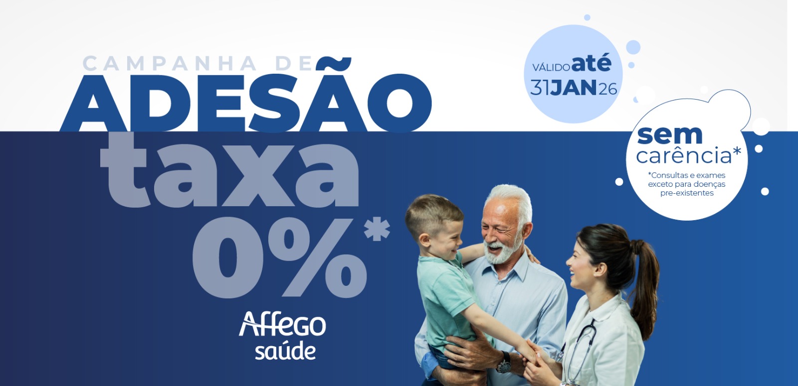 Quem aderir ao plano nos próximos 180 dias, garante isenção total da taxa de adesão e liberação imediata sem período de carência para consultas e exames.