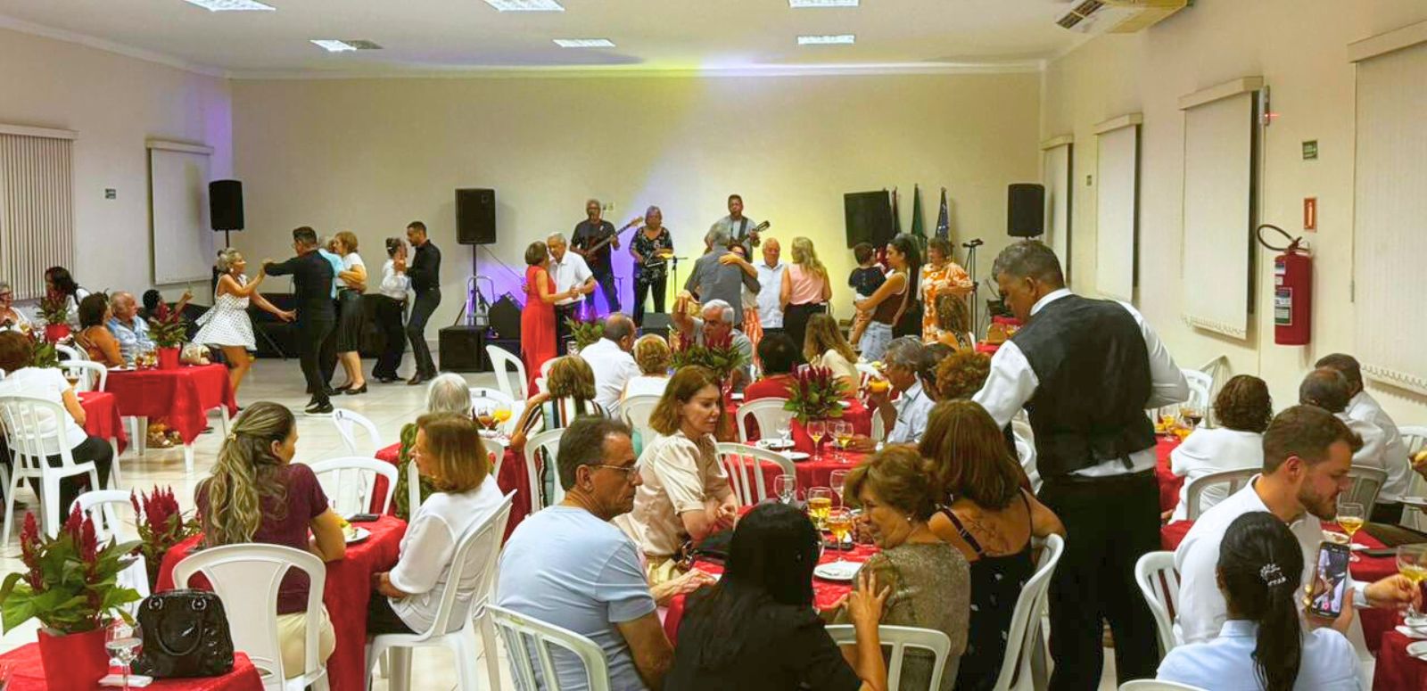 O salão virou um grande espaço de confraternização, com muita animação, comida gostosa e boas risadas.