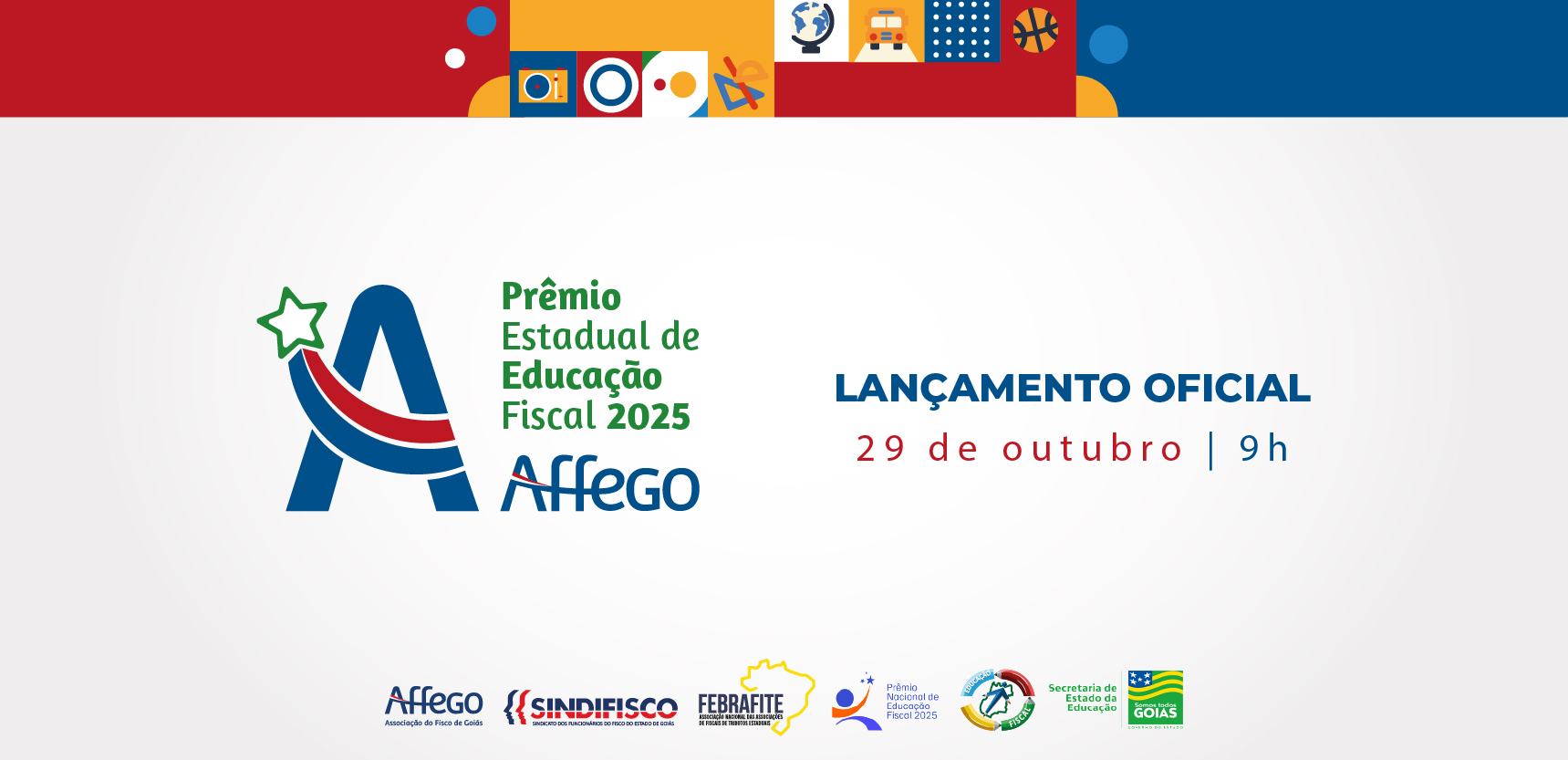 A Affego com apoio do Sindifisco-GO, realiza no dia 29 de outubro de 2025, às 9h, na sede da entidade, o lançamento do Prêmio Estadual de Educação Fiscal de Goiás.