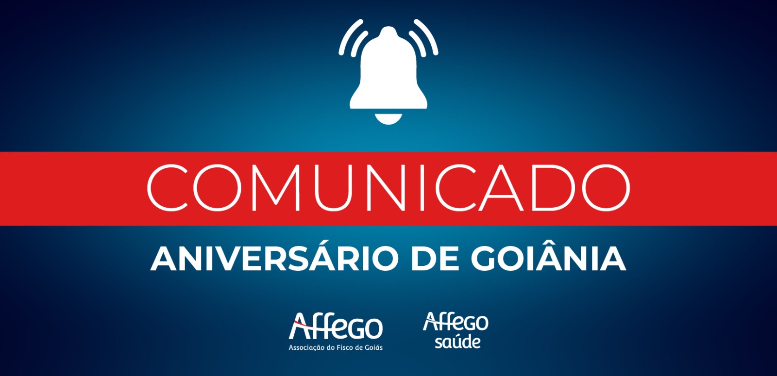 Informamos que neste 24 de outubro (sexta-feira), não haverá expediente na Associação dos Funcionários do Fisco do Estado de Goiás (Affego) devido ao feriado de aniversário de Goiânia.