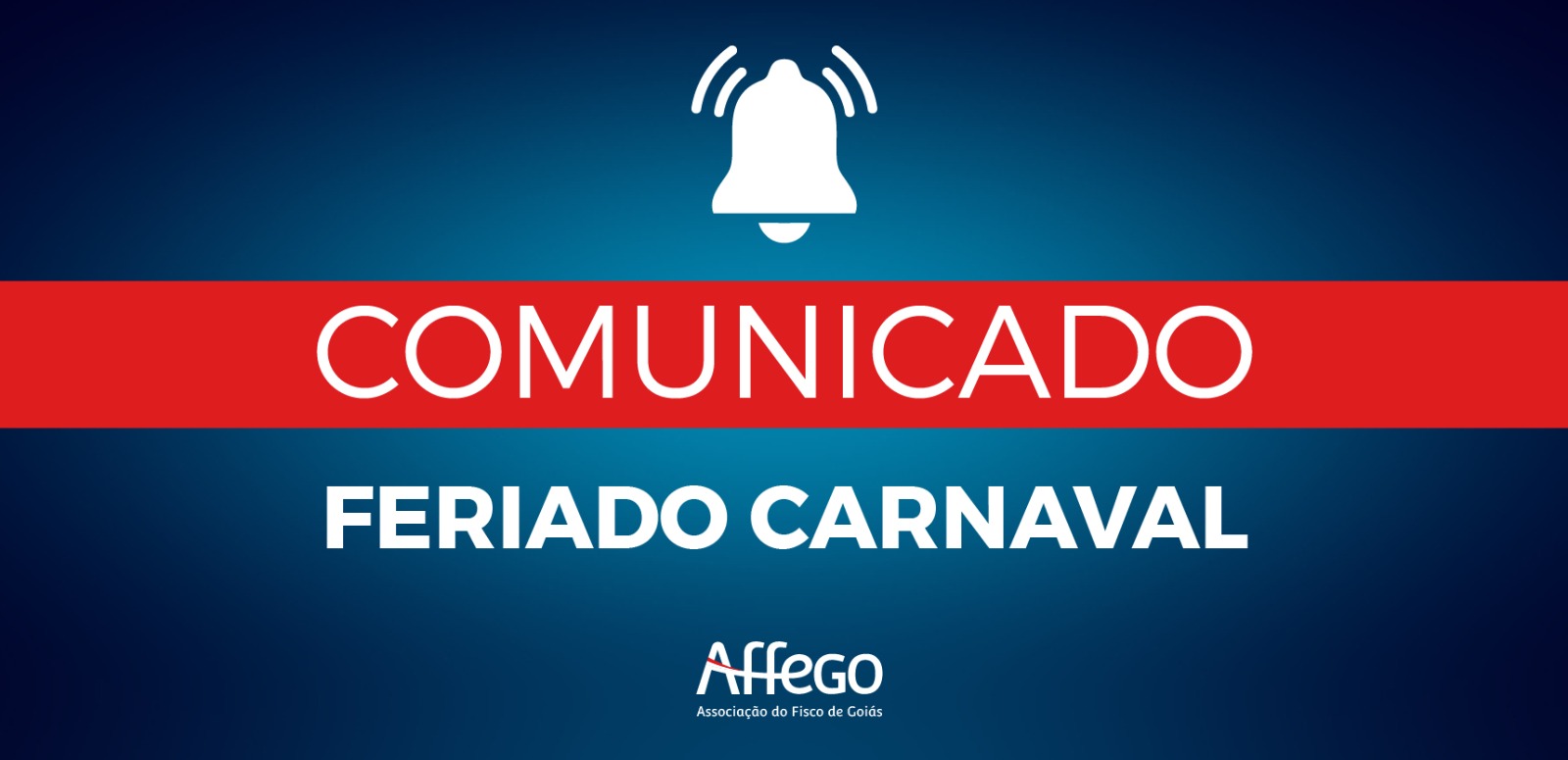Informamos que nos dias 3, 4 e 5 de março (segunda, terça e quarta-feira até 12h), não haverá expediente na Affego devido ao feriado de Carnaval.