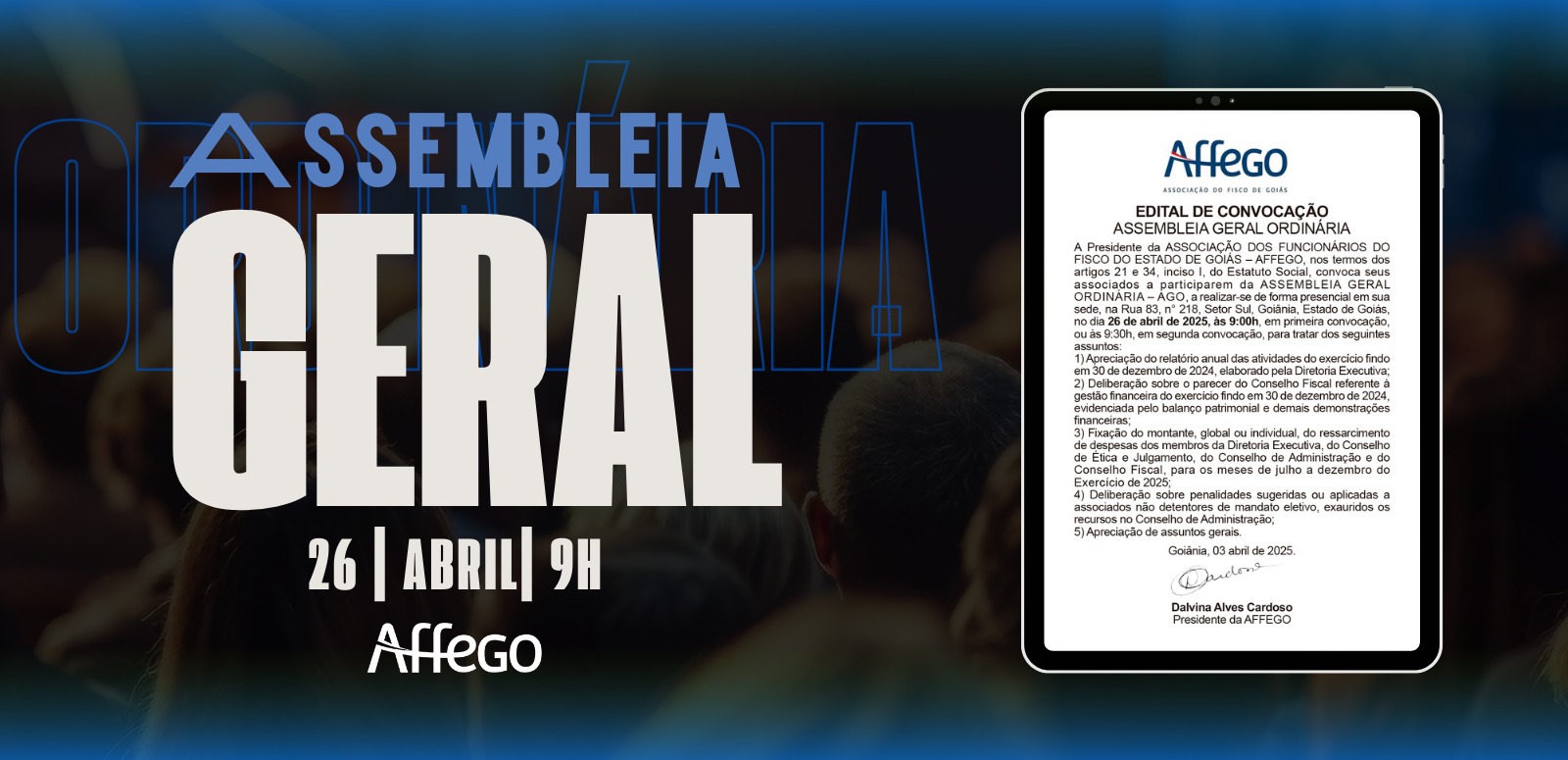 Convocação para Assembleia Geral Ordinária da Affego em 26 de abril