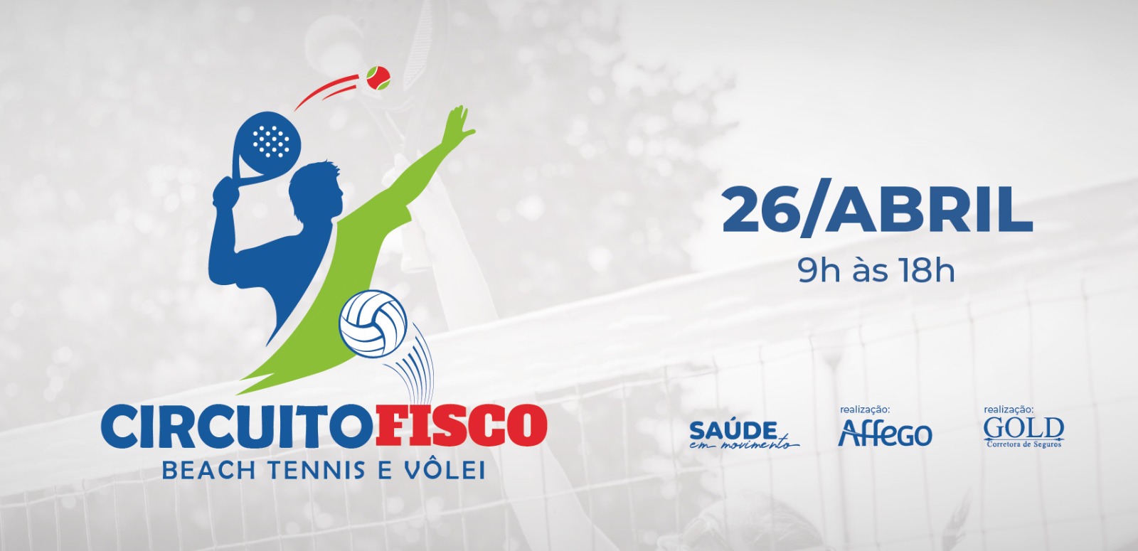 A Affego realiza no dia 26 de abril, o Circuito Fisco de Beach Tennis e Vôlei, um evento esportivo voltado para auditores fiscais e companheiros(as) com o objetivo de promover integração e saúde