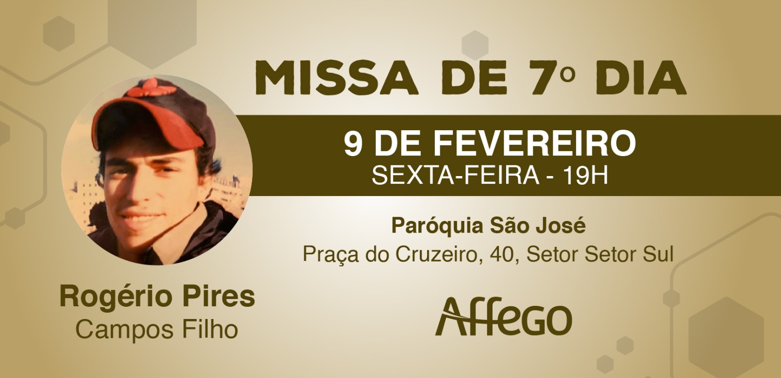 A família do beneficiário Rogério Pires Campos Filho convida todos os associados a se unirem a eles na Missa de Sétimo Dia em memória de seu ente querido.