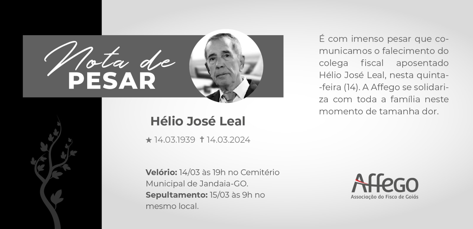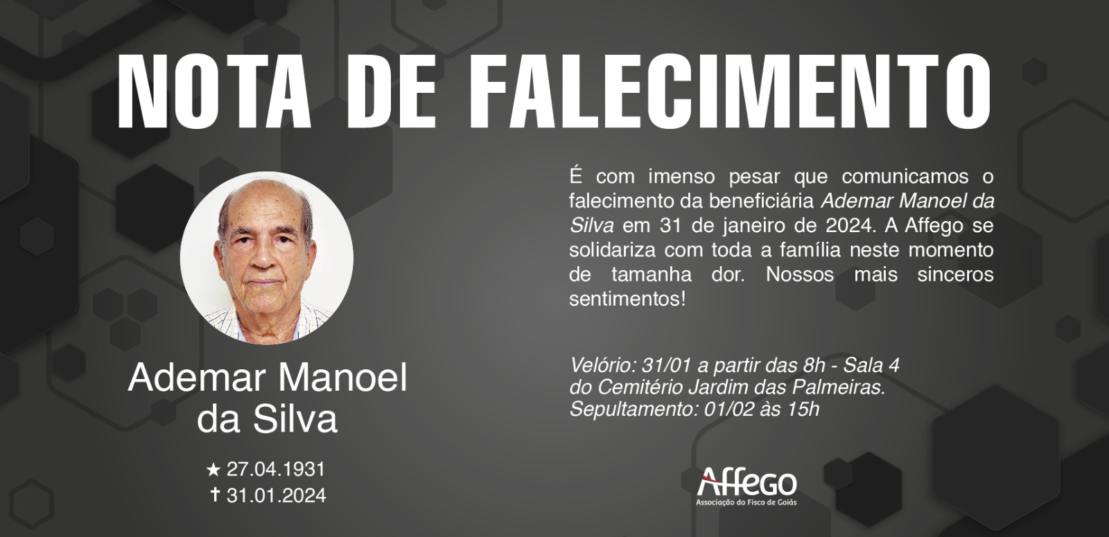 A Affego se solidariza com toda a família neste momento de tamanha dor.