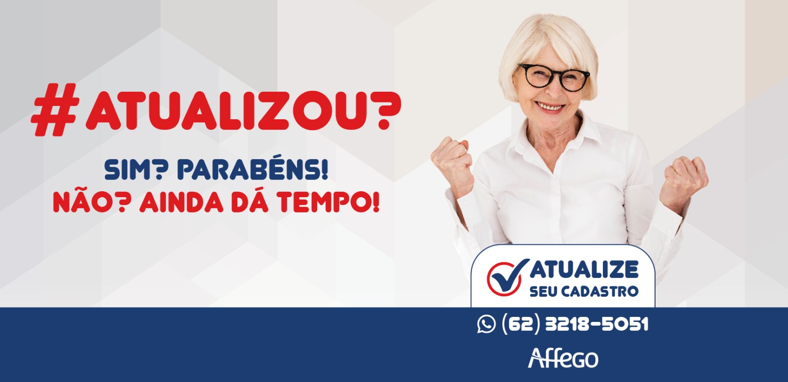 Informamos que o seu cadastro, junto à AFFEGO, encontra-se desatualizado, dificultando-nos o contato, na maioria das vezes para assuntos de seu interesse.