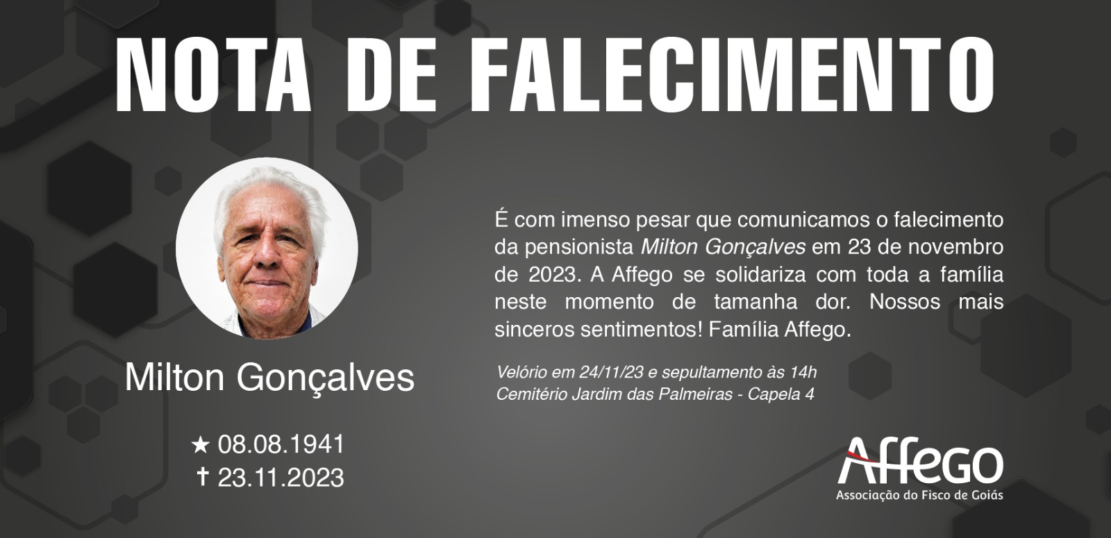 A Affego expressa suas mais sinceras condolências à família enlutada, solidarizando-se neste momento de imensa dor. Que encontrem conforto e apoio para enfrentar essa perda irreparável.