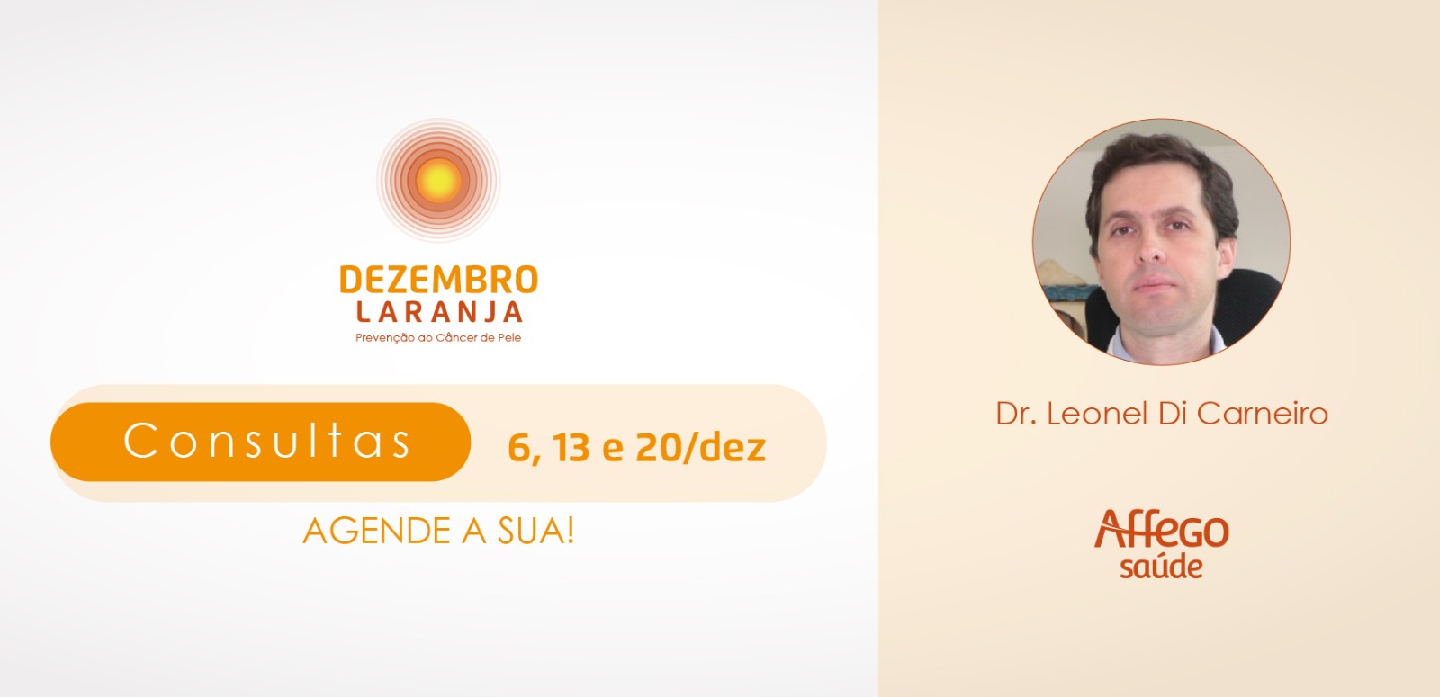 O Affego-Saúde informa que o Dr. Leonel Di Carneiro, renomado dermatologista, estará disponível para consultas nas quartas-feiras dos dias 13 e 20 de dezembro na Clínica Vivre, em Goiânia