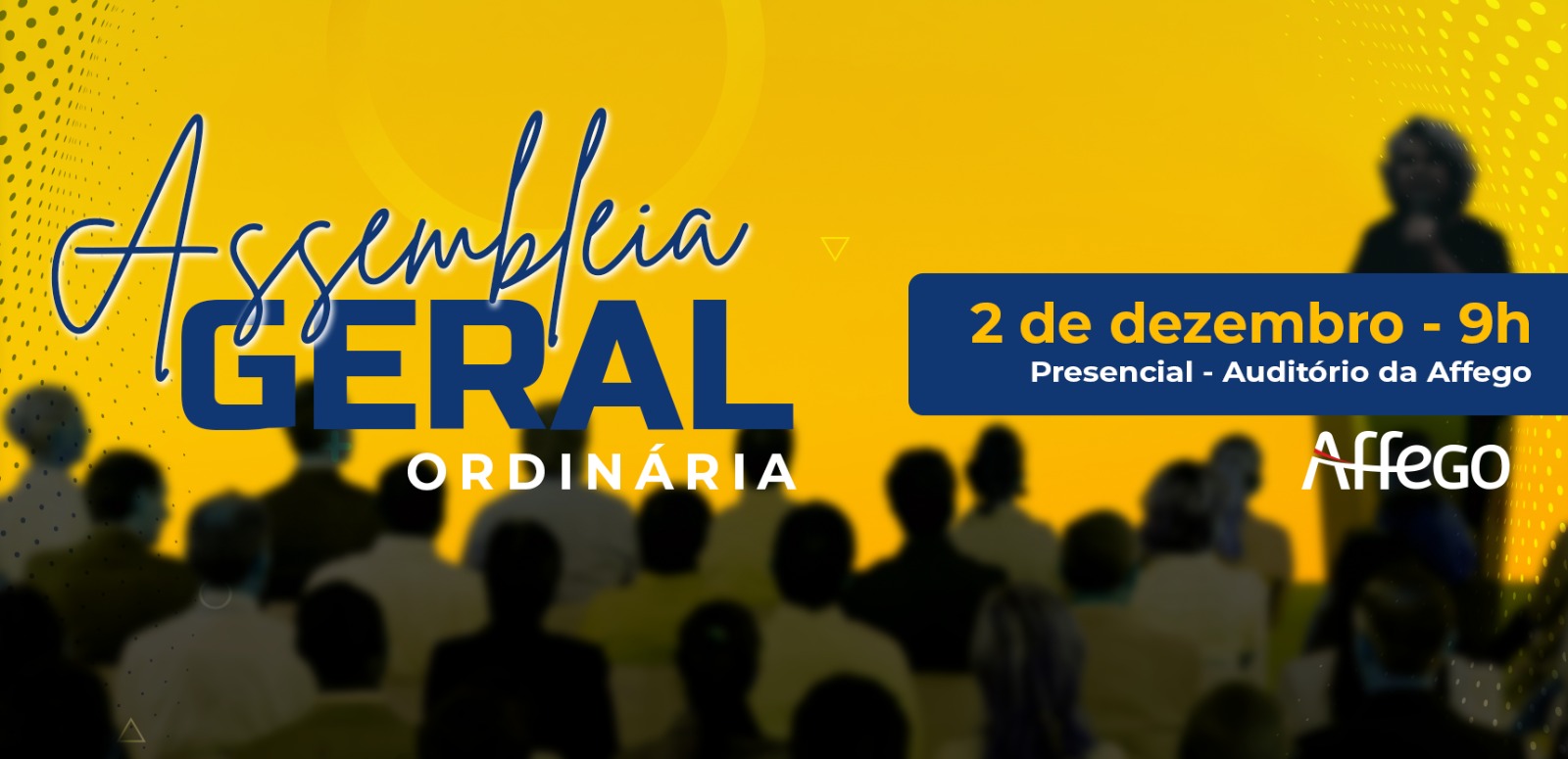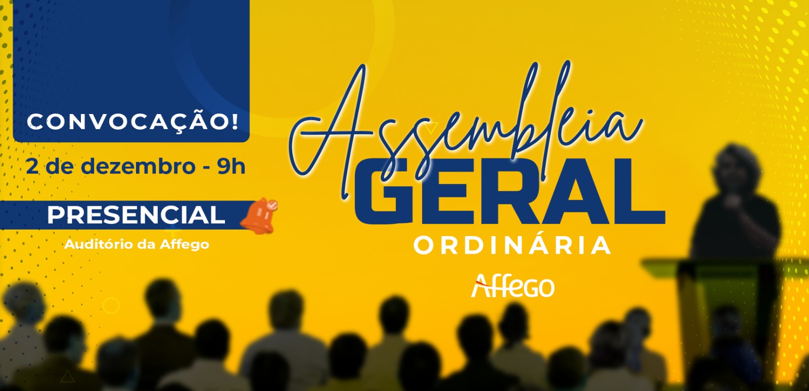 Caros associados, a Presidente Executiva da Affego convoca todos os associados para a Assembleia Geral Ordinária, exclusivamente em caráter PRESENCIAL, em primeira e segunda convocação.